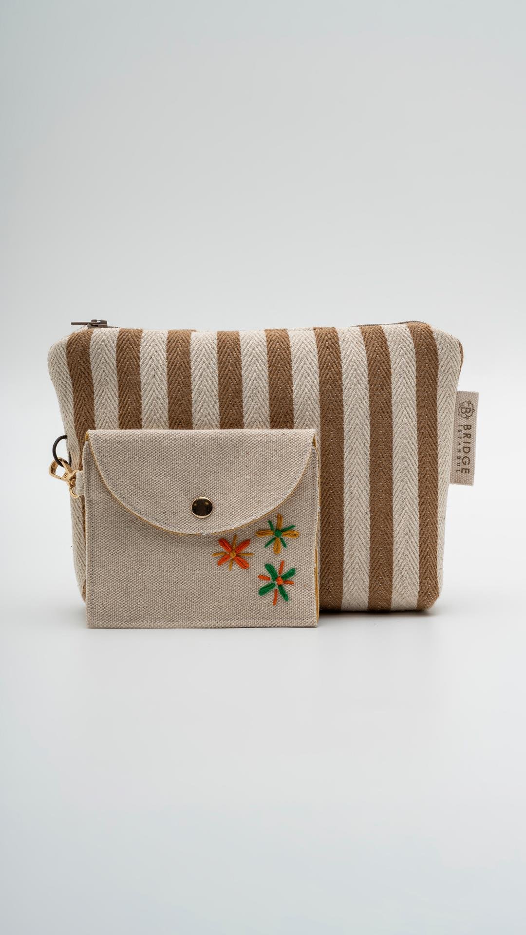 Günlük hayatın karmaşasında hem şık hem de düzenli kalmak isteyenler için tasarlandı! El Yapımı Özel Tasarım Makyaj Çantası Seti, ana makyaj çantasını (clutch) ve vazgeçilmez mini ped çantasını bir araya getiriyor. Bu set, kişisel eşyalarınızı zarif bir şekilde organize etmeniz için mükemmel bir çözümdür.